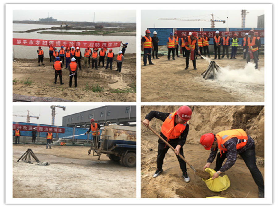 鄒平市孝婦河提升改造工程項目部消防防汛應急演練