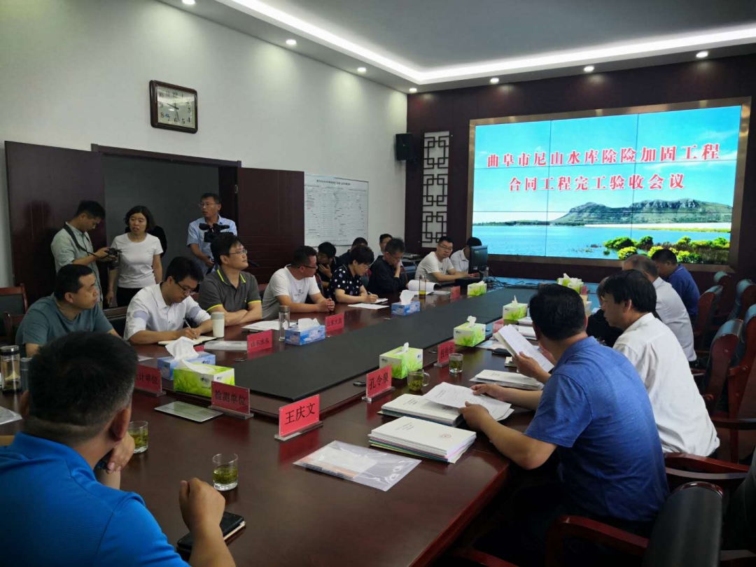 2020年5月30日上午,曲阜市尼山水庫管理局主持召開了曲阜市尼山水庫除險(xiǎn)加固工程合同工程完工驗(yàn)收會議。濟(jì)寧市城鄉(xiāng)水務(wù)局、曲阜市尼山水庫管理局、山東省水利勘測設(shè)計(jì)院、濟(jì)寧市水利工程建設(shè)監(jiān)理中心有限公司、山東省水利工程試驗(yàn)中心、山東水總有限公司等單位的代表參加了會議。
