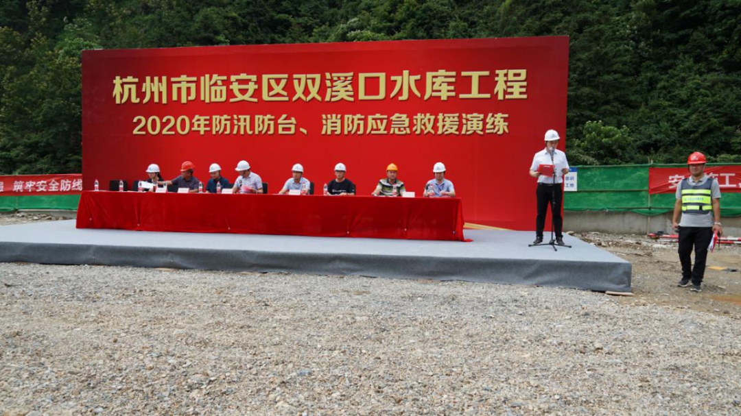 為進一步增強杭州市臨安區雙溪口水庫工程全體人員防汛防臺和消防安全意識,強化應急預案保障措施的落實,提高各參建單位應對突發性洪水和火災等事件的應急能力,確保汛期施工人員生命財產安全,減少火災事故災害損失。6月12日上午,雙溪口水庫工程法人單位杭州魯潤水電開發有限公司組織各參建單位,開展防汛防臺和消防應急救援演練活動。