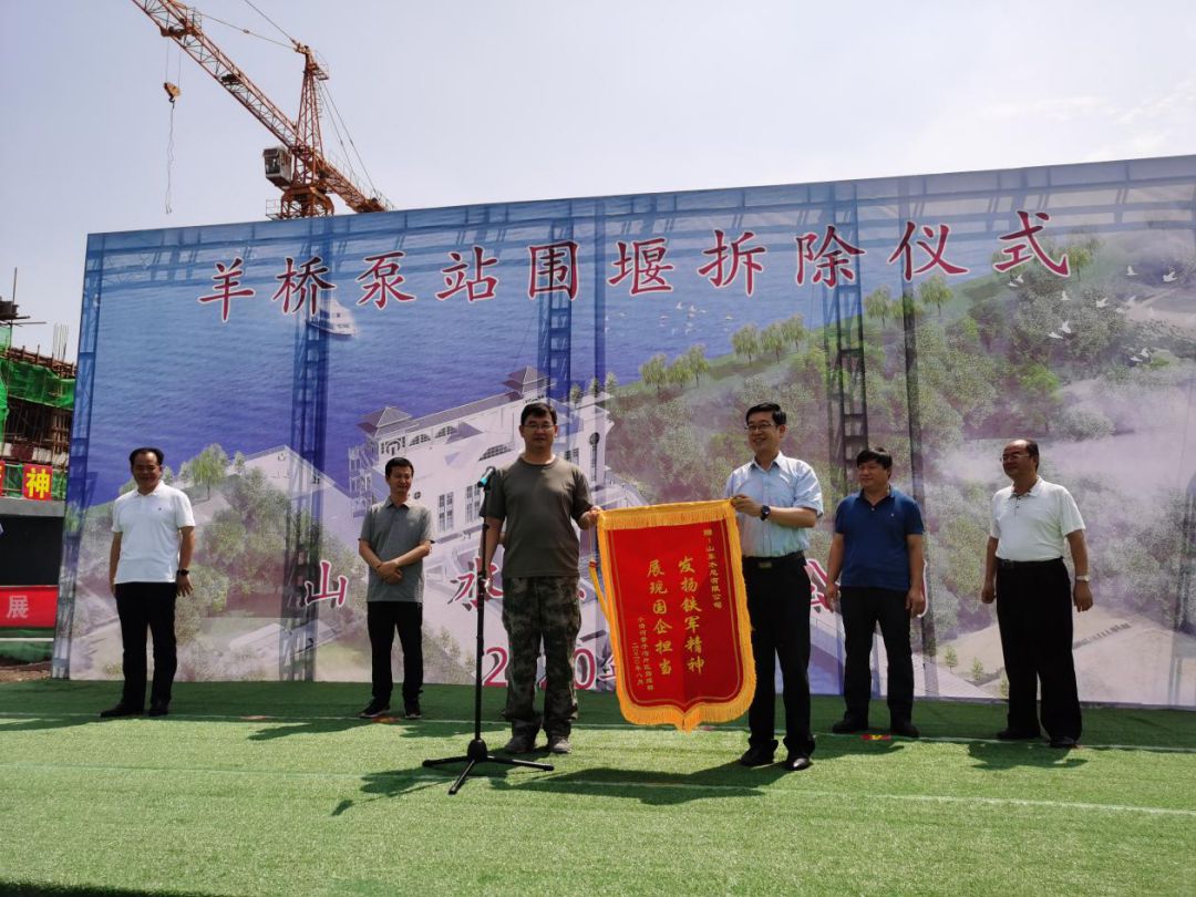 羊橋泵站閘門完全具備了啟閉功能,水泵具備了排水功能,圍堰的拆除標志著羊橋泵站的正式啟用,為今年防汛防潮排澇提供了工程保障,對保證羊口鎮人民生命財產安全具有重要意義。儀式上,王法順部長代表工程指揮部給公司授予了錦旗,表達了對公司領導及參建職工的感謝,贊揚了水總人自強不息、勇于超越的鐵軍精神。