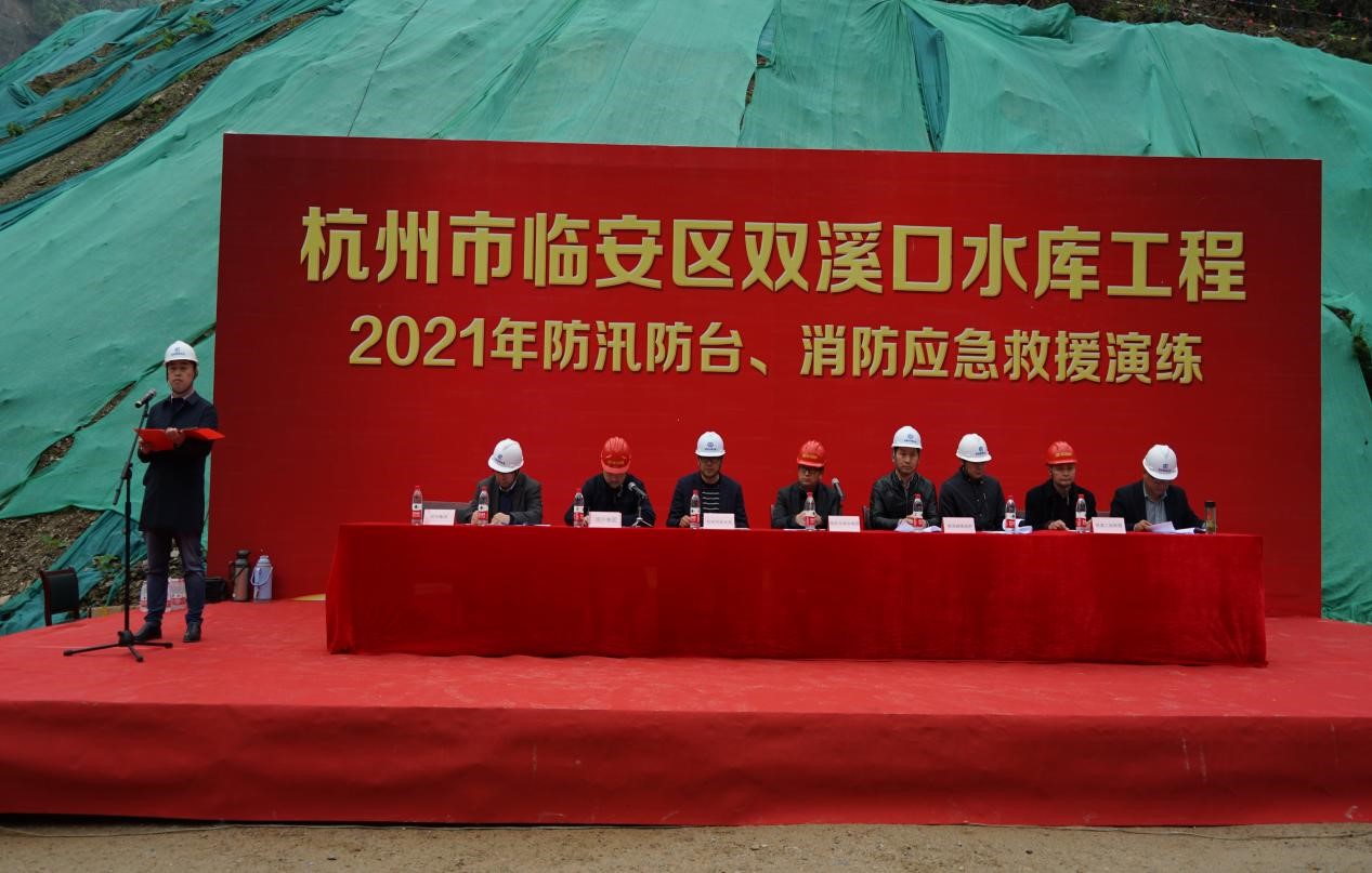 為進一步增強杭州市臨安區雙溪口水庫工程參建人員防汛防臺和消防安全意識,強化應急預案保障措施落實,提升參建各方應對突發性洪水和火災等事件的應急能力,確保汛期施工人員生命財產安全。4月14日上午,在即將入汛之際,項目法人杭州魯潤水電開發有限公司組織各參建單位在雙溪口水庫工程現場開展了2021年防汛防臺和消防應急救援演練活動,近70人參與現場演練。