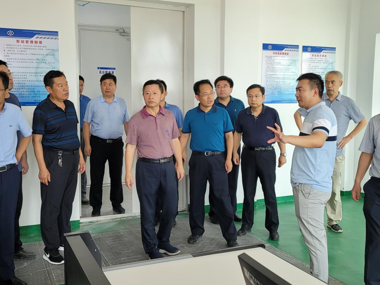 7月8日,在省流域中心、濰坊市、壽光市相關領導的陪同下,山東省水利廳一級巡視員王祖利到我公司承建的羊橋泵站、八面河泵站視察工程防洪度汛準備情況。檢查組一行察看了泵站中控室、主廠房、擋潮閘等,項目經理張仰保匯報了工程所取得的進展,操作人員演示了主泵開機排澇,檢查組對工程所取得的效果一致表示滿意。