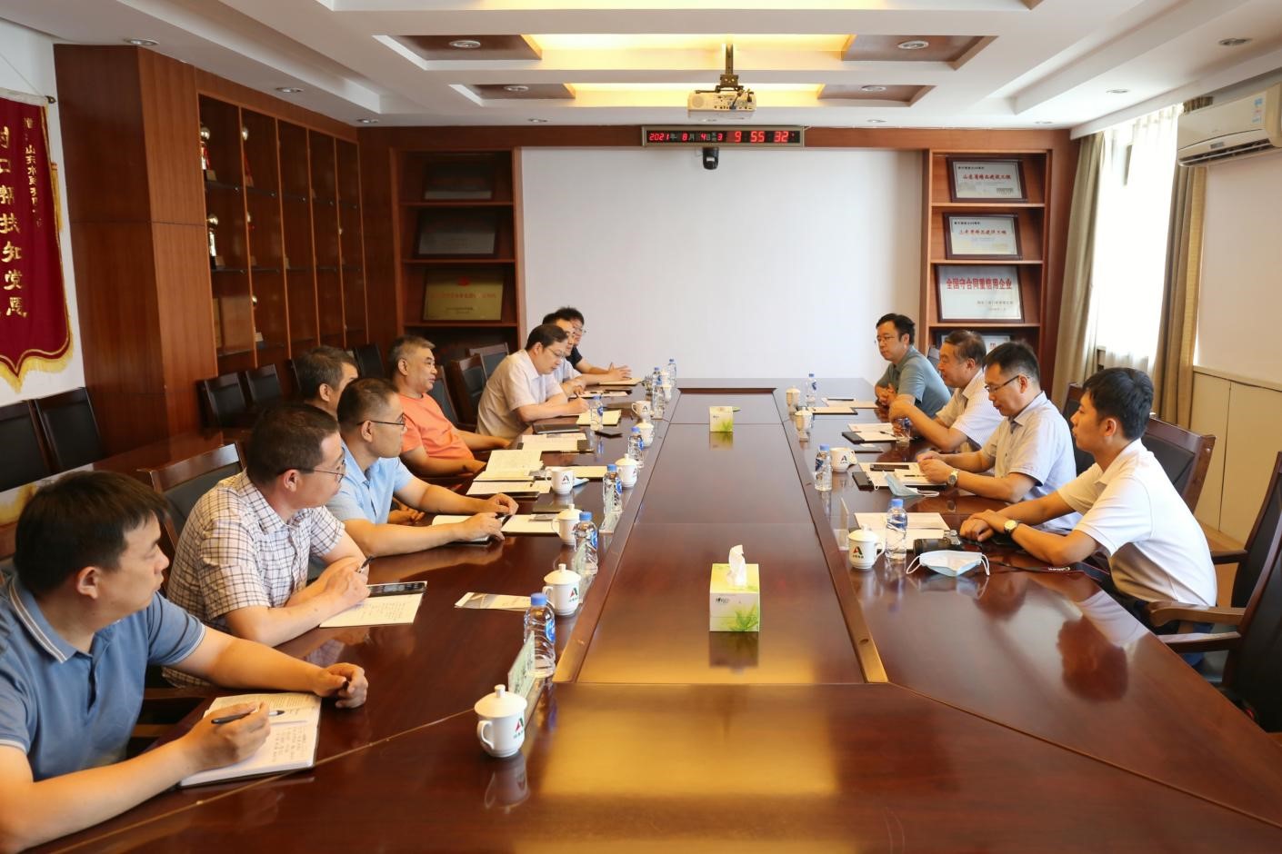 8月4日上午,山東水利職業學院黨委副書記、院長于紀玉,水利工程系主任甄紅鋒,水利工程系副主任劉東峰到公司進行調研,公司黨委書記、董事長劉深遠,黨委副書記、總經理李光市,黨委委員、副總經理杜貞義,安全總監郭法文及多個部門負責人出席了本次調研會議。