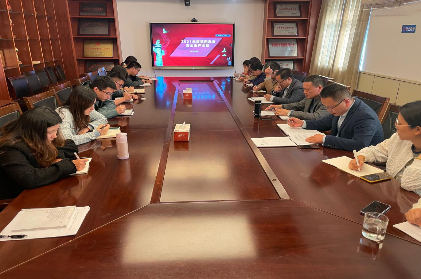 11月1日下午,山東水總有限公司第一分公司在七樓會議室召開第四季度生產安全經營會議。會議由總經理孫彥啟主持,公司駐濟員工參加會議,駐項目部人員通過視頻參會。