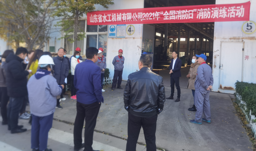 11月9日是“全國消防日”。上午,山東省水工機械有限公司聯合山東省第二水利工程局有限公司在山東水總有限公司曲阜駐地,舉辦了“辦公樓逃生演練”。辦公樓人員按照應急預案程序進行有序疏散、集合,并在辦公樓前參加了消防設施使用培訓。隨后車間人員進行了“車間消防滅火演練”,現場組織專業人員進行防火、滅火及醫療救助知識講解。