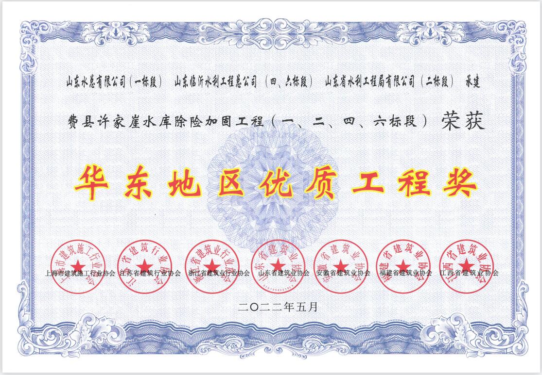 近日,公司承建的費(fèi)縣許家崖水庫(kù)除險(xiǎn)加固工程榮獲2021年度“華東地區(qū)優(yōu)質(zhì)工程獎(jiǎng)”;泗水縣泗河黃陰集大閘除險(xiǎn)加固工程榮獲2020-2021年度“山東省優(yōu)質(zhì)結(jié)構(gòu)工程獎(jiǎng)”。榮獲這兩個(gè)獎(jiǎng)項(xiàng),是公司在省級(jí)質(zhì)量獎(jiǎng)項(xiàng)方面的又一次突破。在工程創(chuàng)優(yōu)上,公司始終堅(jiān)持以企業(yè)發(fā)展為核心,踐行“干一個(gè)工程,樹(shù)一塊豐碑”的質(zhì)量方針。