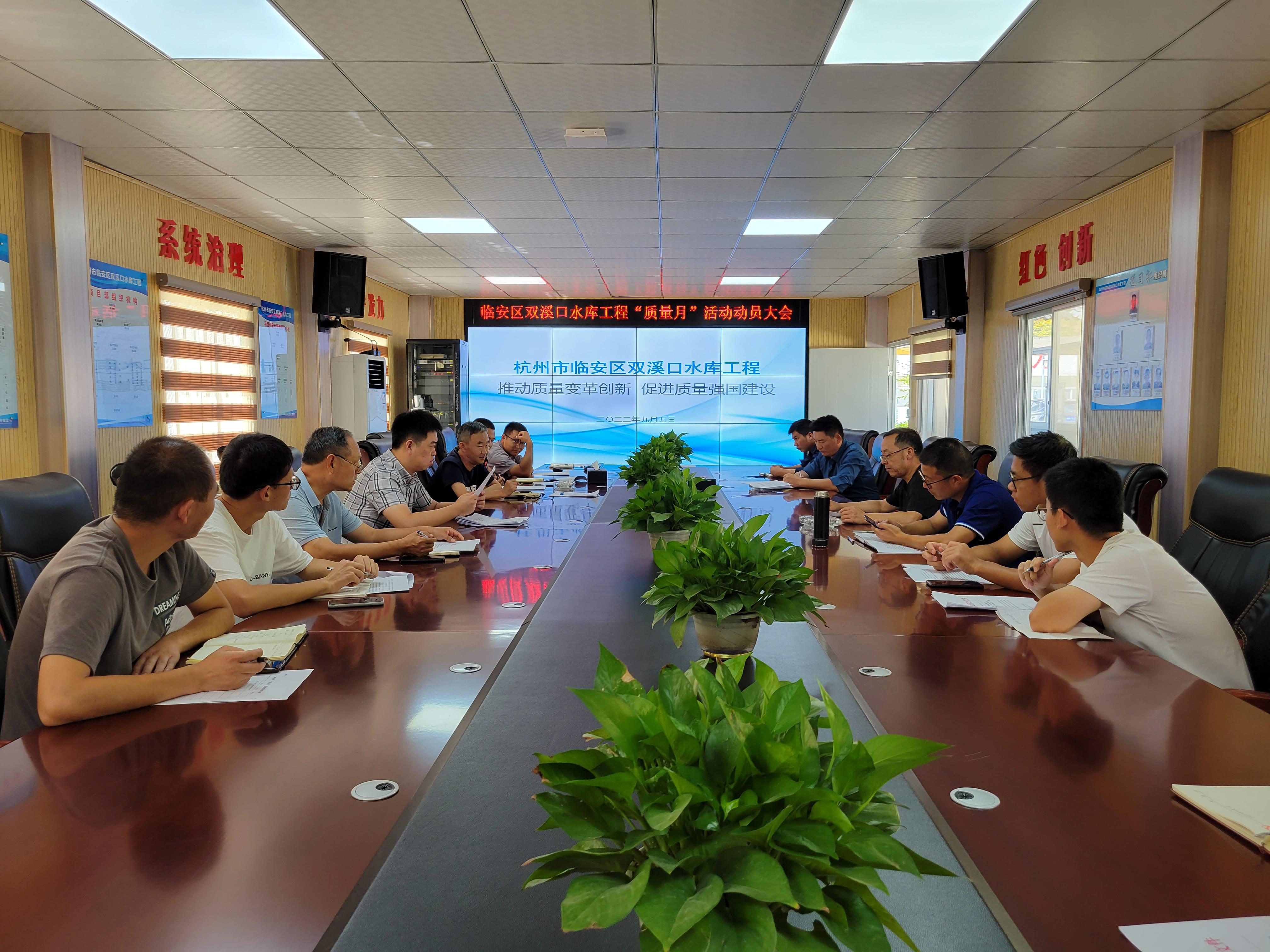 9月5日,杭州魯潤(rùn)公司圍繞“推動(dòng)質(zhì)量變革創(chuàng)新、促進(jìn)質(zhì)量強(qiáng)國(guó)建設(shè)”為主題,組織雙溪口水庫工程各參建單位召開“質(zhì)量月”活動(dòng)動(dòng)員大會(huì),副總經(jīng)理孟天琦主持會(huì)議并講話。
