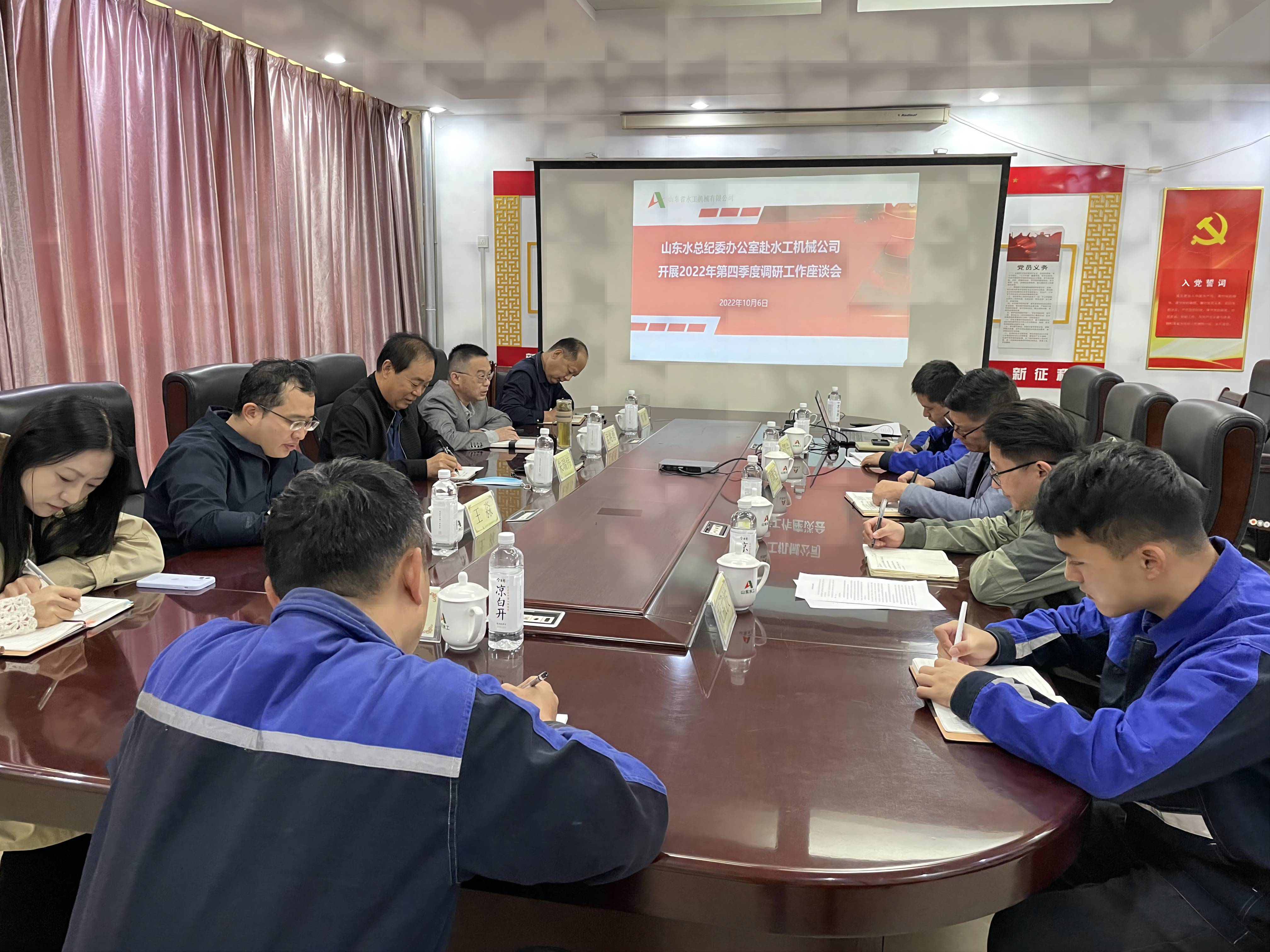 10月5日,調研組首先在水工機械公司三樓召開座談會,聽取水工機械公司機料采購、廢料處理、成本控制等情況匯報,以及公司在各項工作中遇到的難題及下一步工作措施,對有關問題給予現場指導。調研組指出,公司目前各項任務還十分艱巨,面對錯綜復雜的形勢和艱巨繁重任務,要深入貫徹上級黨委的總體要求,堅決落實集團公司的各項決策部署,動員全體干部職工,積極應對安全環保、生產經營、產品質量“三重”大戰大考,堅定信心、攻堅克難、苦干實干。隨后,調研組一行實地查看生產車間,了解項目進展,認真檢查現場安全生產落實情況,聽取職工訴求和意見建議。