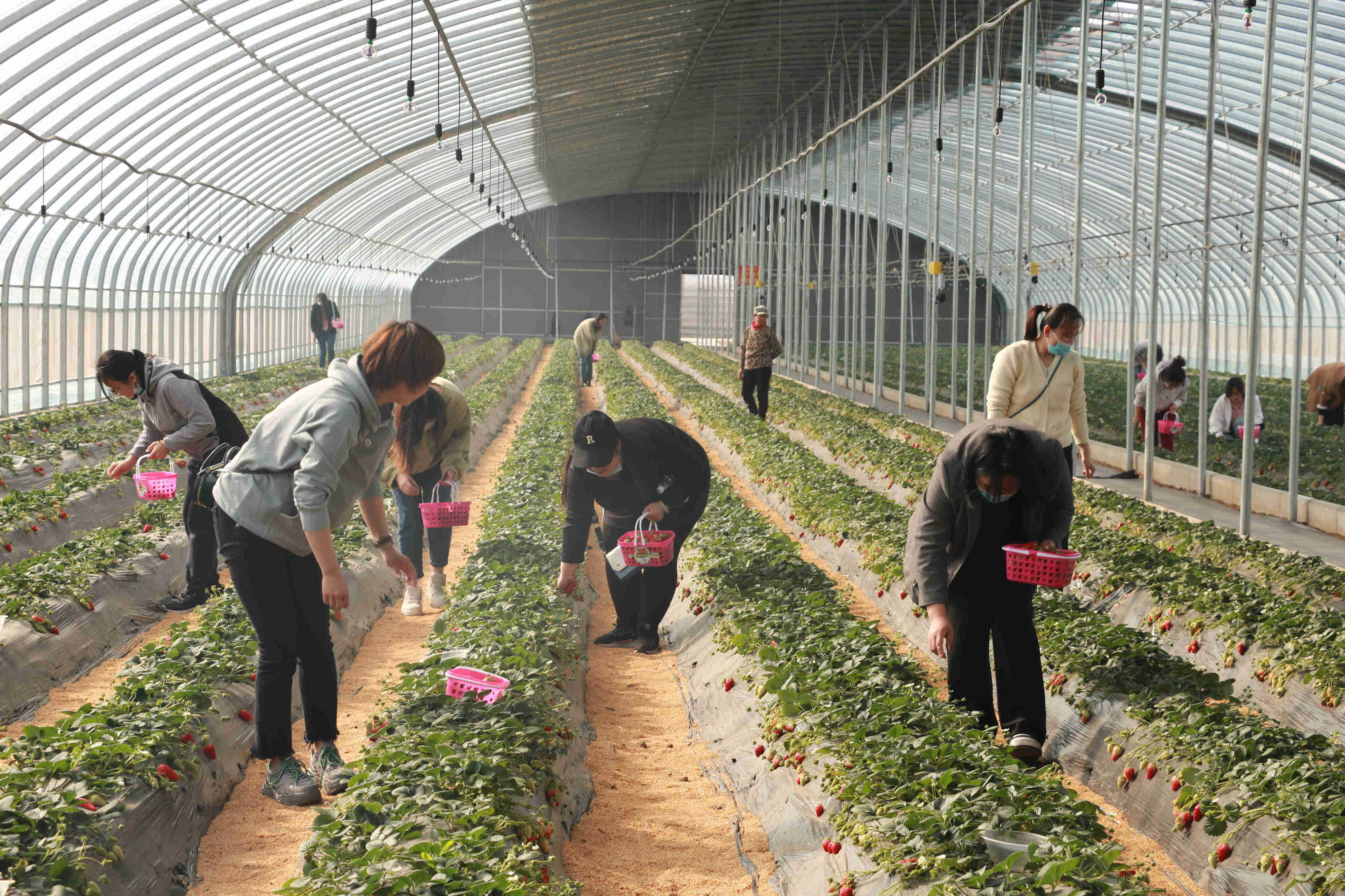 在草莓種植園里,女職工們盡情感受著春天的美好,心情格外愉悅。大棚里一片生機(jī)勃勃,翠綠的葉子、鮮紅欲滴的果實(shí)、芬芳的果香讓人感到春天即將到來的曼妙腳步。大家手提小果籃,沿著整齊的草莓田,化身快樂的小果農(nóng),一邊采摘品嘗,一邊相互交流,氣氛輕松活潑,體驗(yàn)著采摘草莓、品嘗鮮果的樂趣,現(xiàn)場快樂與熱情四溢。