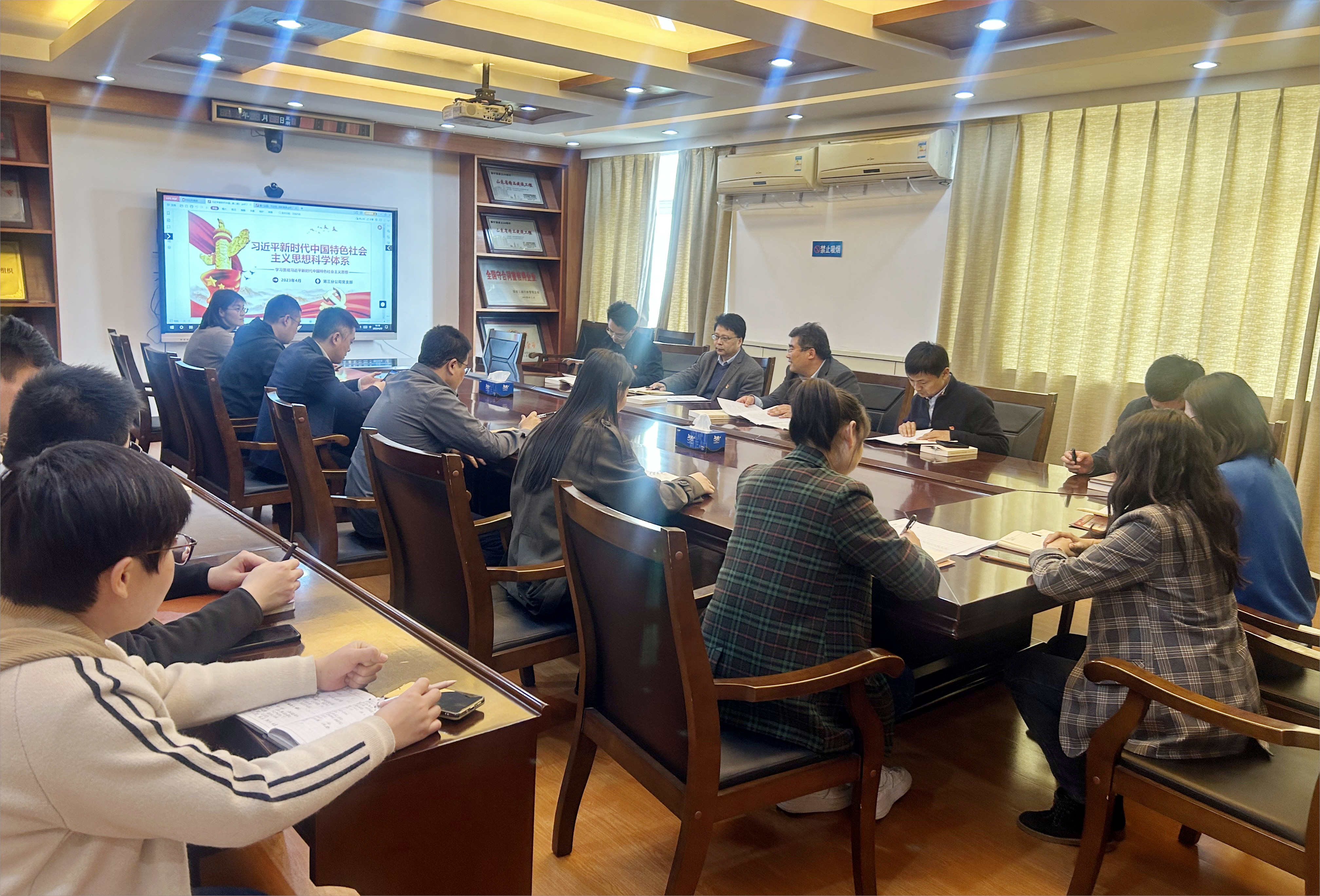 隨后,大家共同學習了“習近平新時代中國特色社會主義思想科學體系知識點”學習課件,并開展熱烈的交流討論。黨員干部紛紛表示,要努力將習近平新時代中國特色社會主義思想學深悟透,做到以學鑄魂、以學增智、以學正風、以學促干。將學習作為自己的“必修課”,拿好學習的“基本分”,學會用新觀點新方法解決老問題,將學習成效轉化為做好本職工作、推動公司高質量發展的生動實踐。