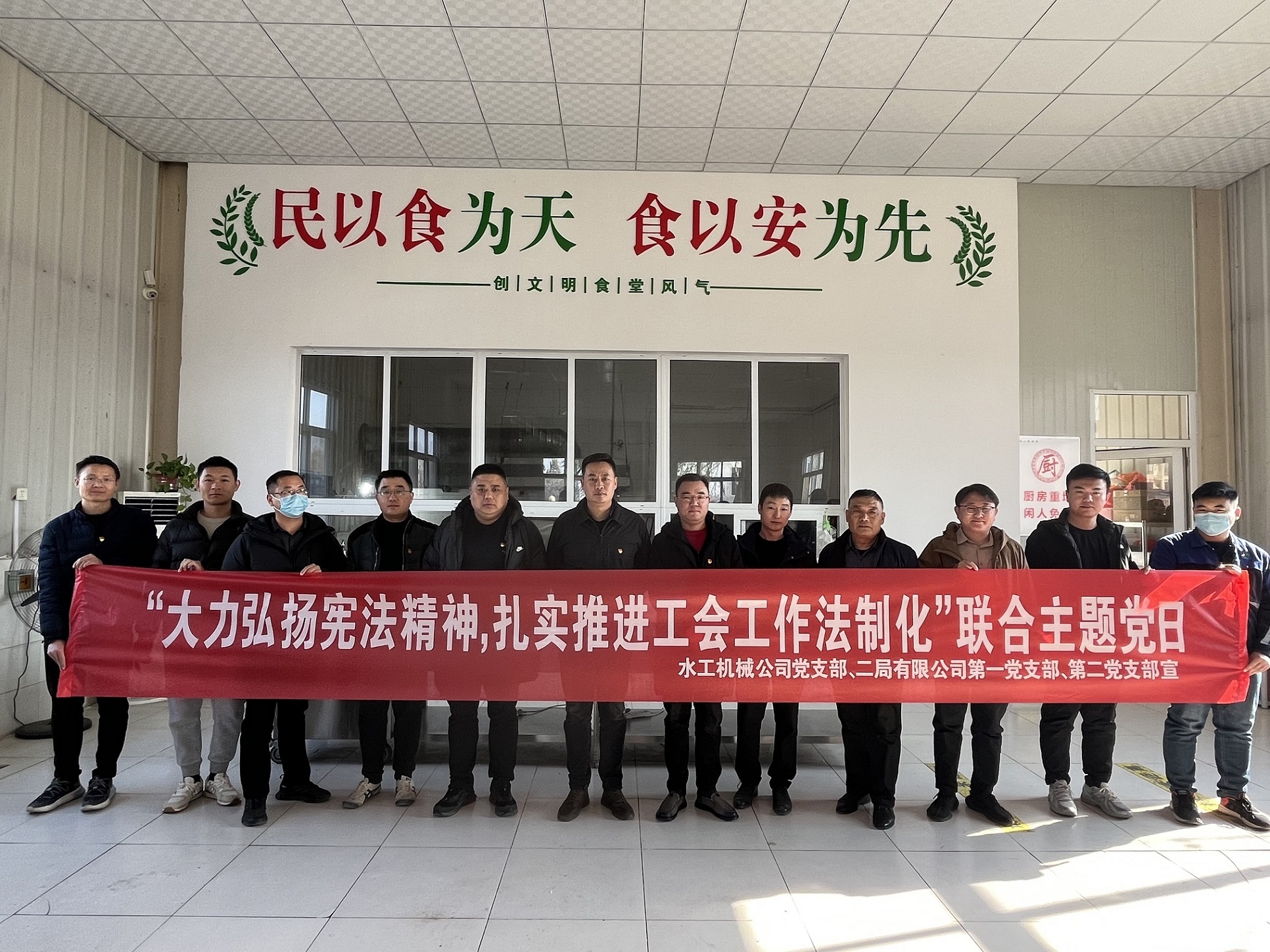 2023 年 12 月 4 日是第十個國家憲法日,為大力弘揚憲法精神,進一步營造尊法學法守法用法濃厚氛圍,增強黨員干部的憲法意識和黨性修養。12月4日,水工機械公司黨支部聯合二局有限公司第一黨支部、第二黨支部共同開展了“大力弘揚憲法精神,扎實推進工會工作法制化”聯合主題黨日活動。