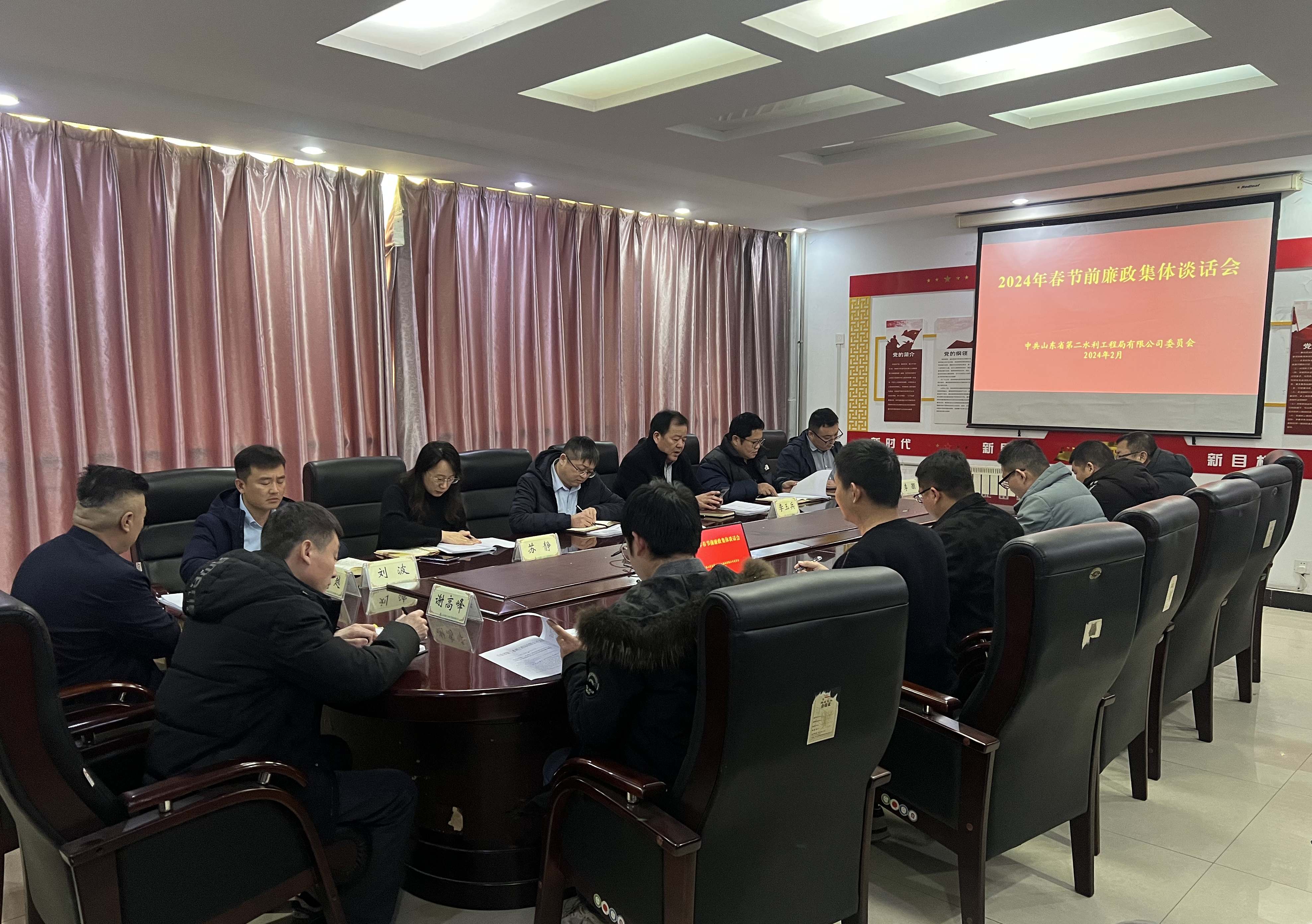 2月2日下午,二局有限公司黨委召開2024年春節前廉政集體談話會議。公司領導班子成員、各部室負責人和各項目負責人參加,二局有限公司黨委書記、總經理王傳波主持會議并就近期重點工作進行安排部署。