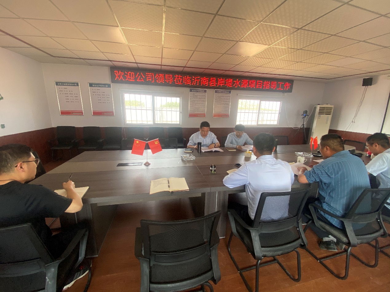 近日,公司黨委副書記、董事、總經理靳文碩到第三分公司沭河上游綜合治理、沂南縣岸堤水源、郯城縣馬頭灌區等項目檢查指導工作,并與部分建設、主管單位開展了商務洽談,第三分公司黨支部書記、總經理徐浩、副總經理王慶捷陪同。