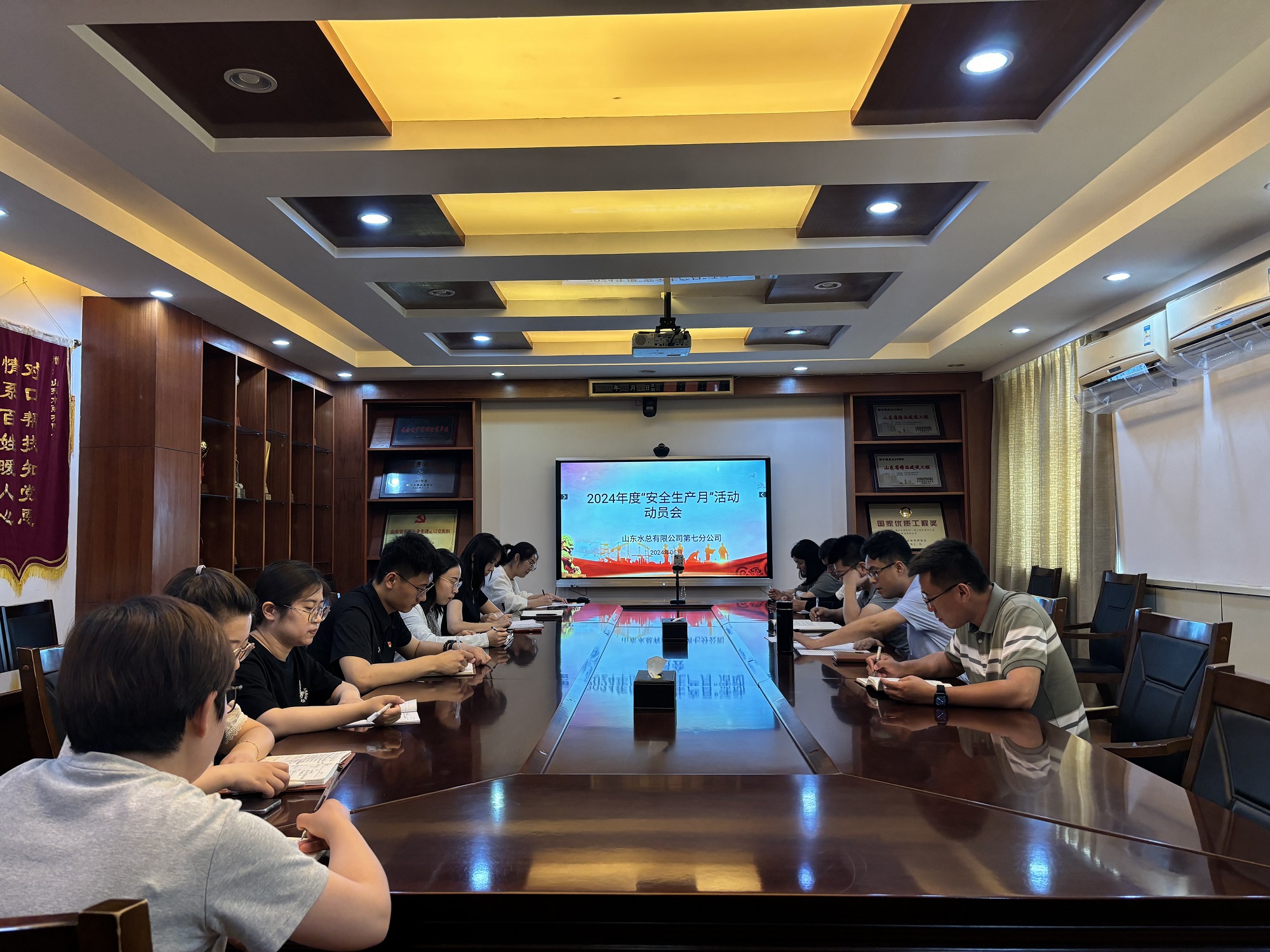 動員會上,韓棟帶領大家學習了習近平總書記關于安全生產重要論述,集體觀看了警示教育片,宣貫了《山東水總有限公司2024年“安全生產月”活動方案》。