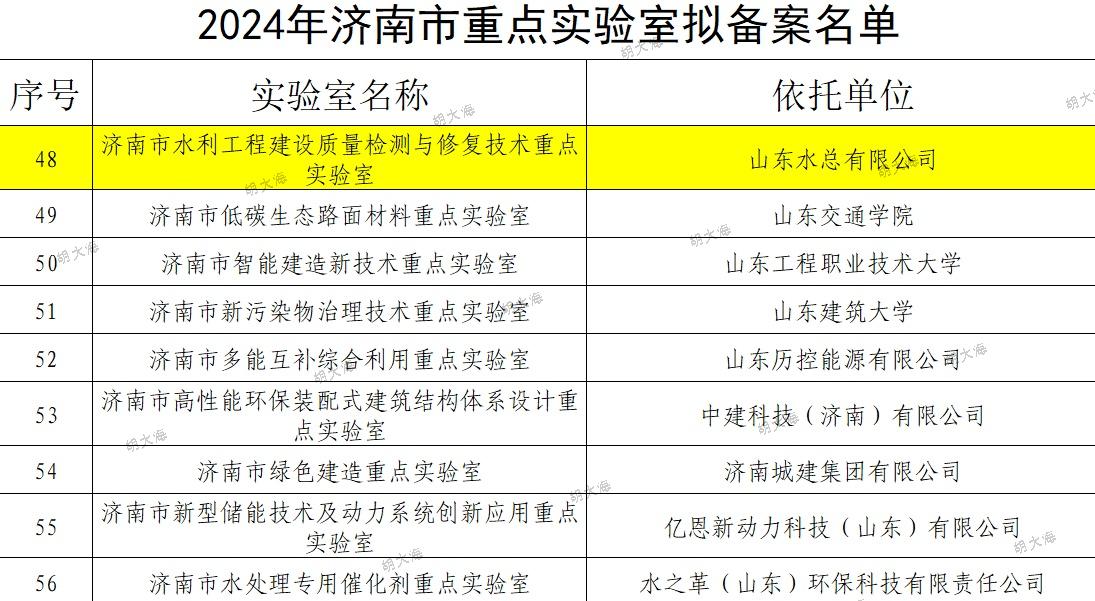 近日,濟南市科技局組織開展了2024年度濟南市重點實驗室備案工作。經歷下區審核推薦、專家評審、現場考察、濟南市科技局黨組會研究,公司申報的濟南市水利工程建設質量檢測與修復技術重點實驗室順利通過認定。
