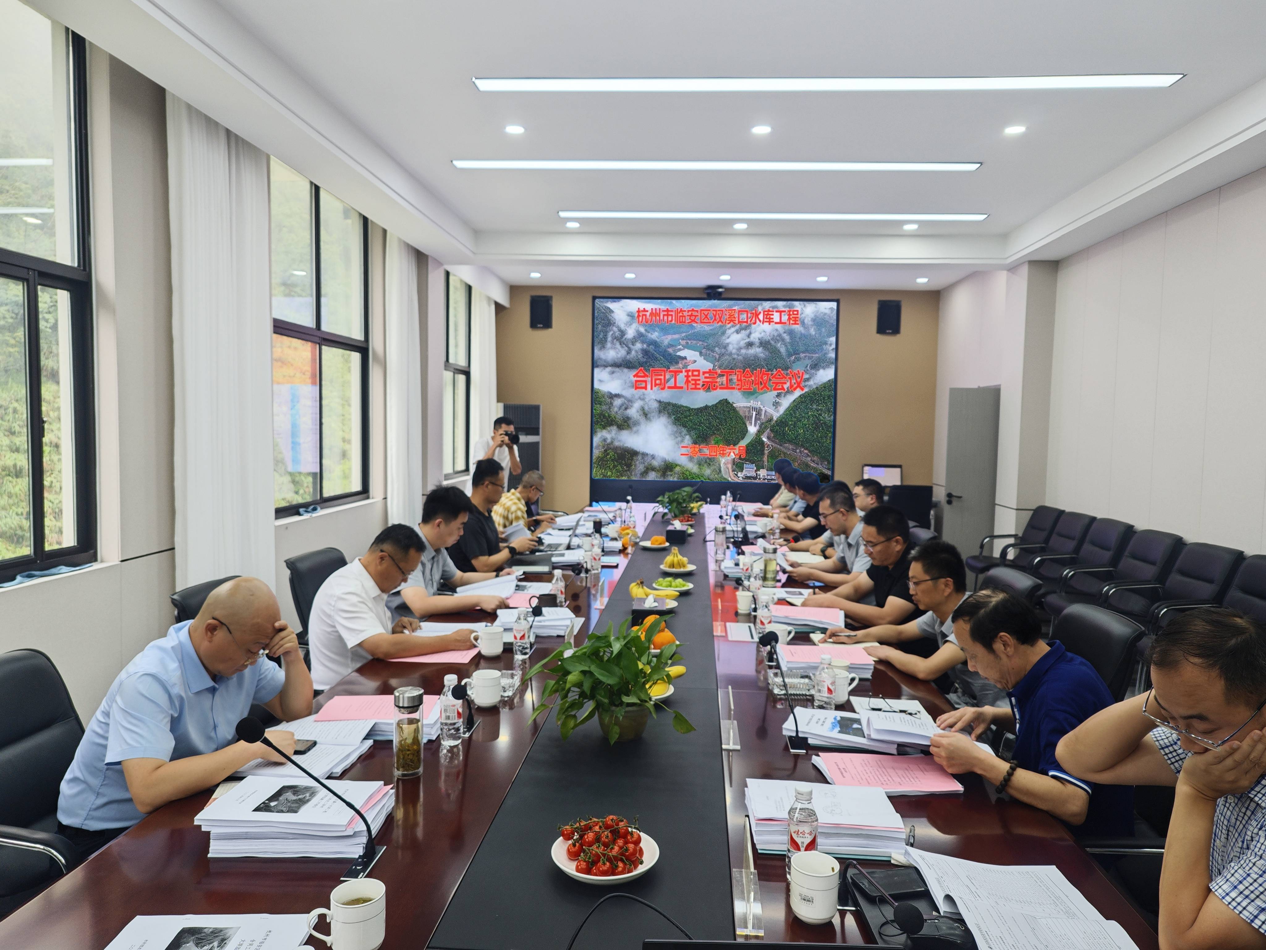 近日,雙溪口水庫合同工程完工驗收會議在水庫運營管理中心召開。臨安區水利水電局、清涼峰鎮、潤豐公司(政府股東方)等相關單位負責人及有關專家、各參建單位項目負責人參加會議。