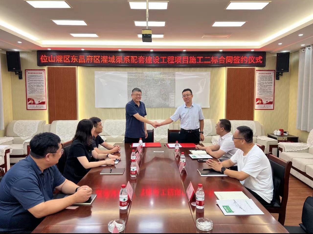 7月15日,二局有限公司新中標的位山灌區東昌府區灌域渠系配套建設工程項目簽約儀式在該項目駐地舉行,東昌府區水利局代表,發包人代表,承建方二局有限公司代表等參加簽約儀式。