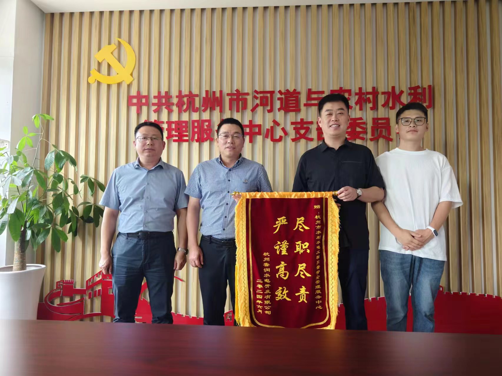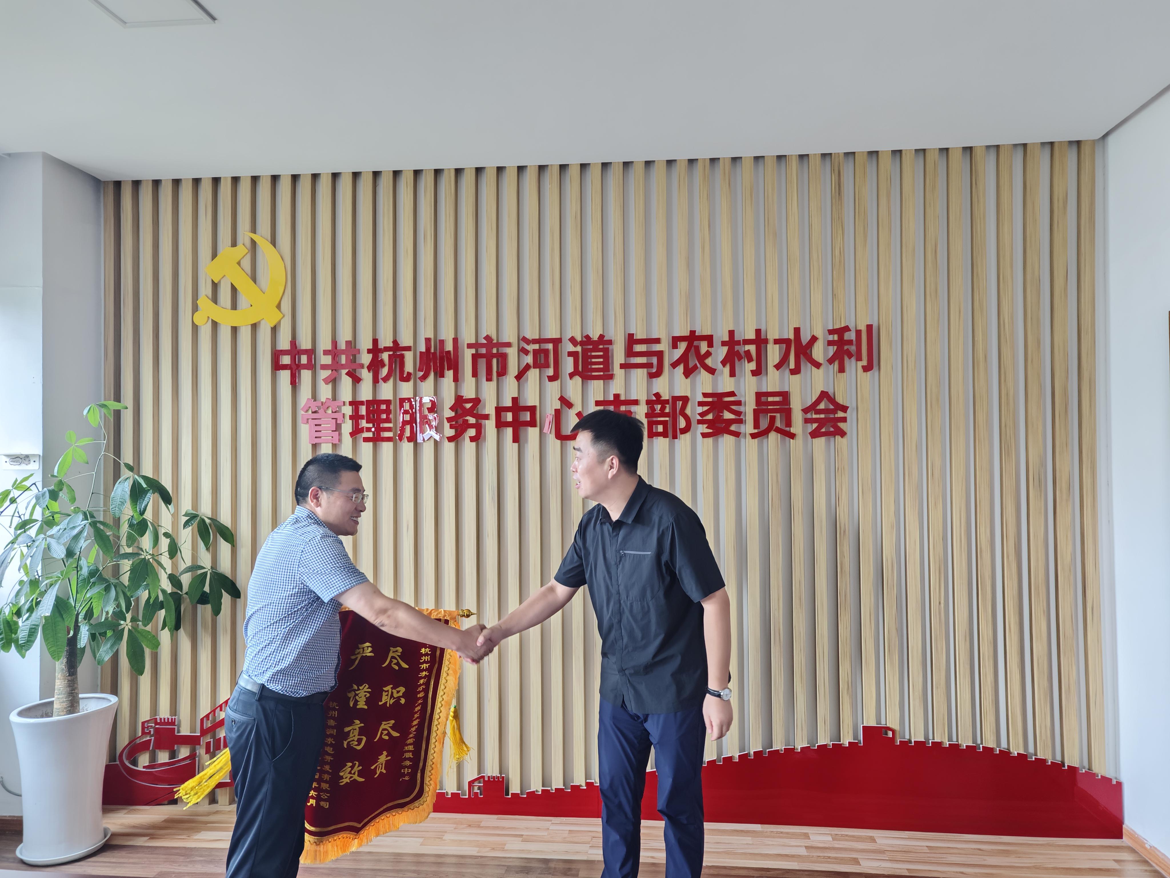 專業(yè)負責鑄品質(zhì) 饋贈錦旗表謝意——杭州魯潤公司向杭州市水利水電工程質(zhì)量安全管理服務(wù)中心贈送錦旗