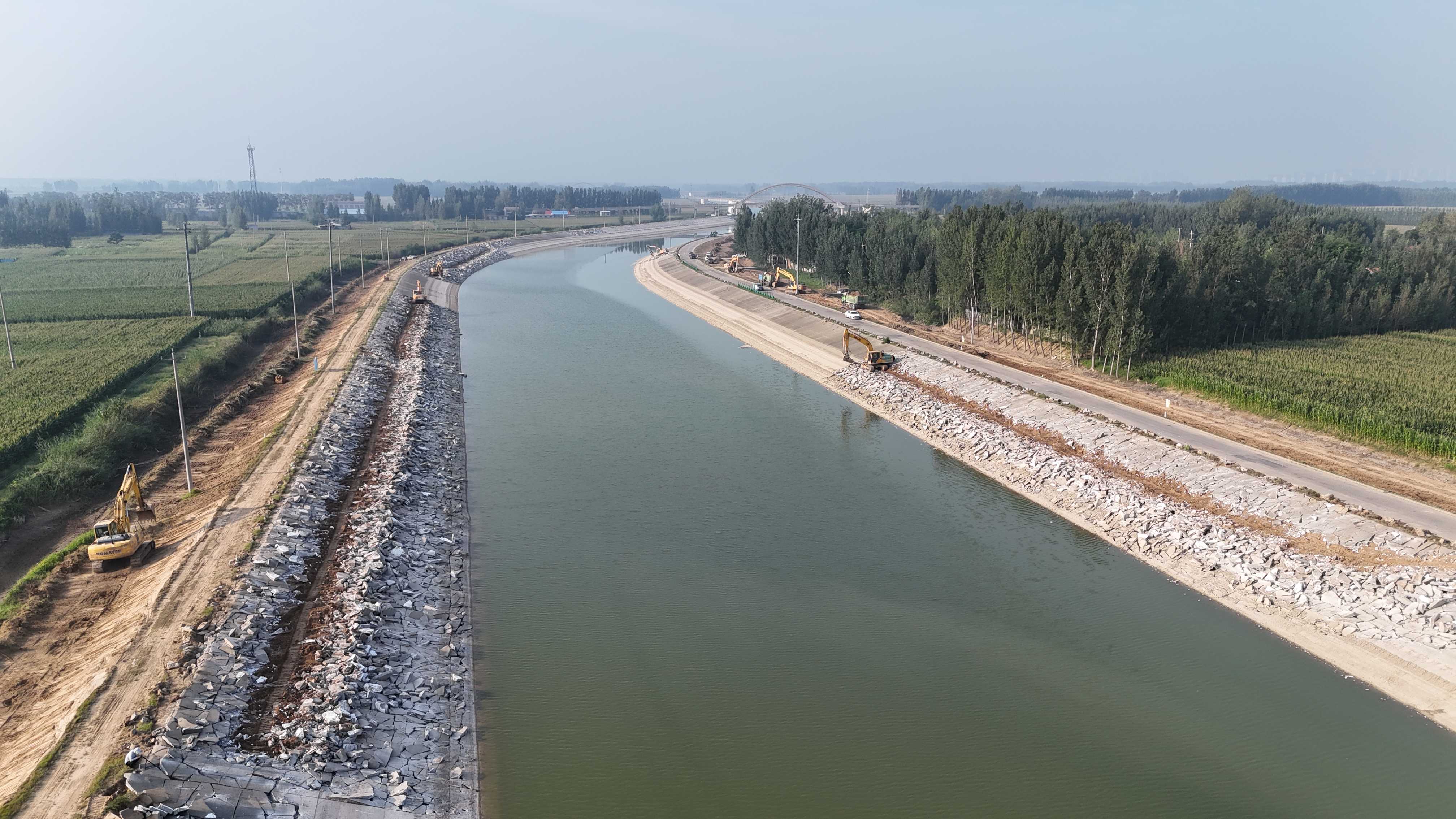 柳長河結(jié)合段工程施工3標(biāo)簽約合同價106696384.31元,計劃總工期618天。主要施工內(nèi)容:疏浚工程、護岸工程、紅廟公路橋橋梁防撞工程、堤防工程、附屬工程及臨時工程、水利設(shè)施工程。工程的實施對于保障區(qū)域防洪安全、促進水路交通發(fā)展具有重要意義,將有效提升東平湖老湖區(qū)的防洪排澇能力和京杭運河柳長河段的航道通航能力。下一步,項目部將全力以赴搶抓施工黃金期,加速推進項目施工進度,保質(zhì)保量、堅定不移完成施工任務(wù)。