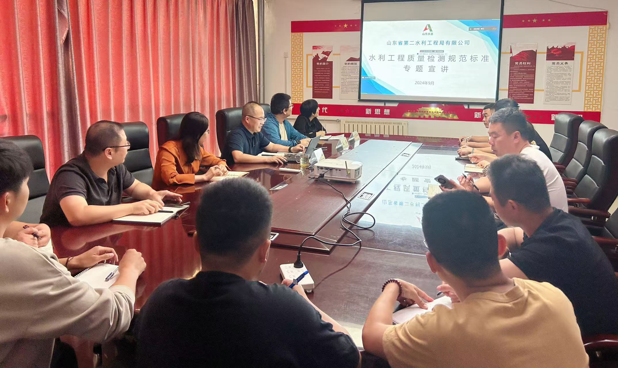 會議中,中心試驗室副主任閆磊從試驗檢測的意義、檢測法律法規、檢測規范、水利工程檢測類別和項目、常見試驗取樣標準等多個方面進行了深入的講解,為參會人員帶來了一場全面而專業的知識分享。