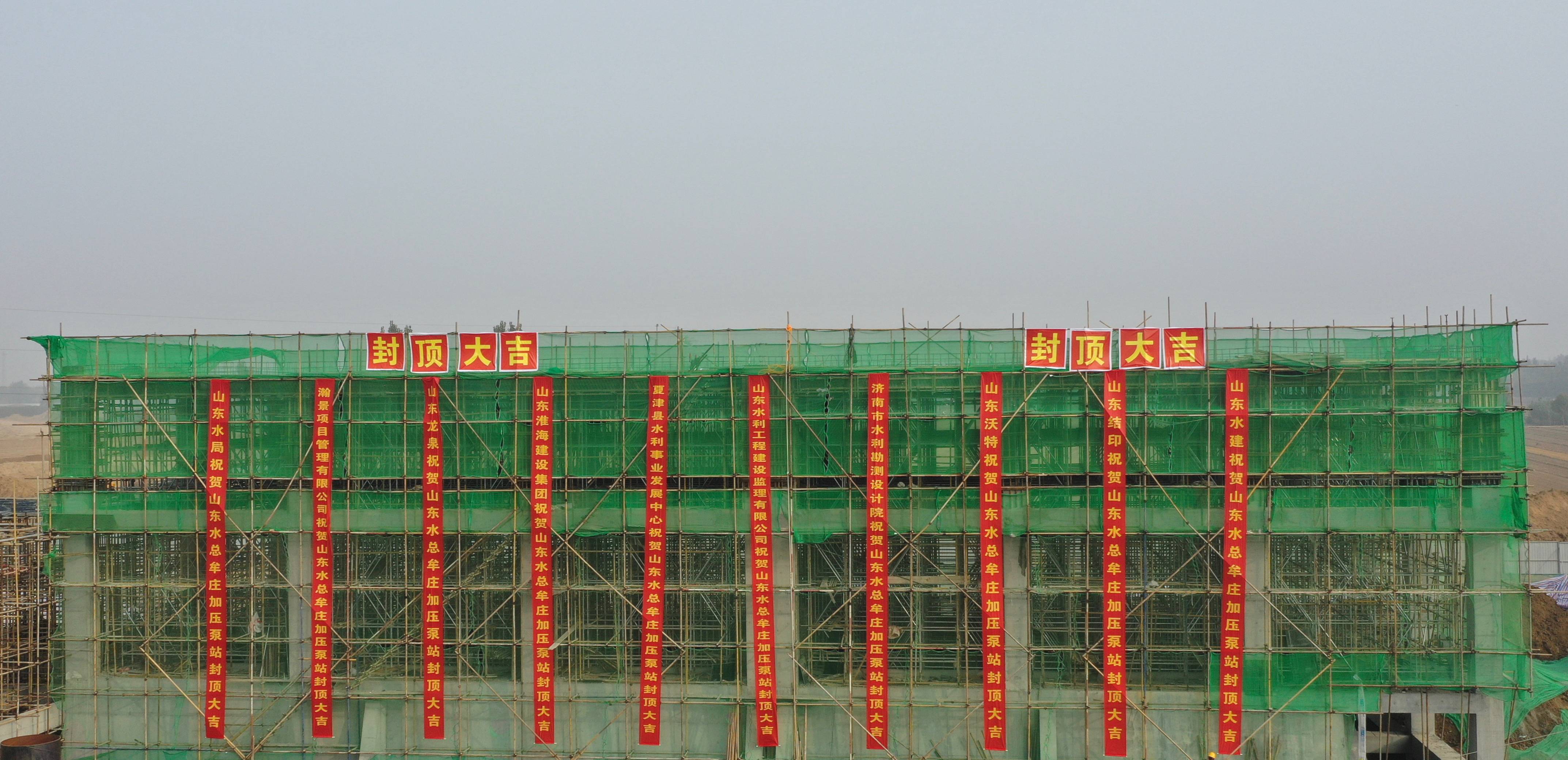 基礎(chǔ)有限公司夏津縣漳衛(wèi)南運(yùn)河向馬頰河相機(jī)分洪工程(一期)施工三標(biāo)牟莊加壓泵站主廠房順利封頂