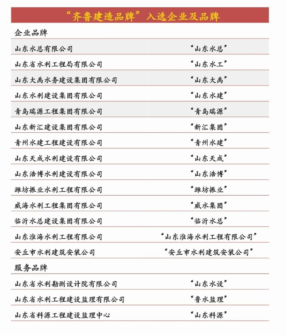 近日,山東省住房和城鄉建設廳正式公布2025年第一批“齊魯建造”品牌榜單,公司憑借過硬的技術實力、卓越的工程品質與高效的綜合管理,成功入選企業品牌類榜單,成為全省17家獲此殊榮的水利企業之一,彰顯了公司在行業內的標桿地位。