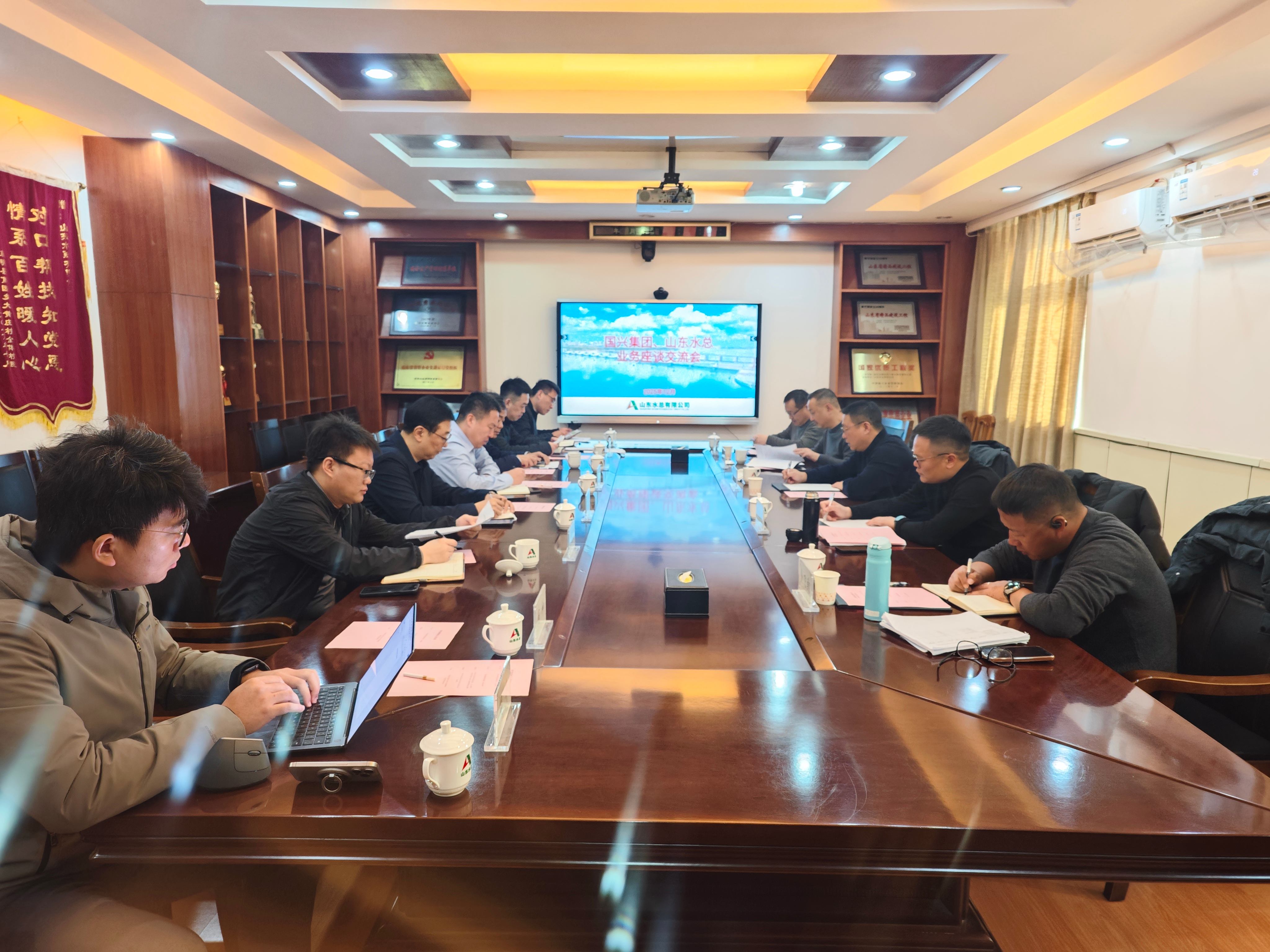近日,浙江國興投資集團黨委副書記、總經理徐進,臨安區水利局黨委委員、總工程師、臨安區雙溪口水庫指揮部副總指揮吳德成一行到公司座談交流。公司黨委副書記、董事、總經理靳文碩出席座談并講話。公司黨委委員、副總經理李光市,財務總監楊利軍及總公司相關部室、魯潤公司、第六分公司相關人員參加座談。