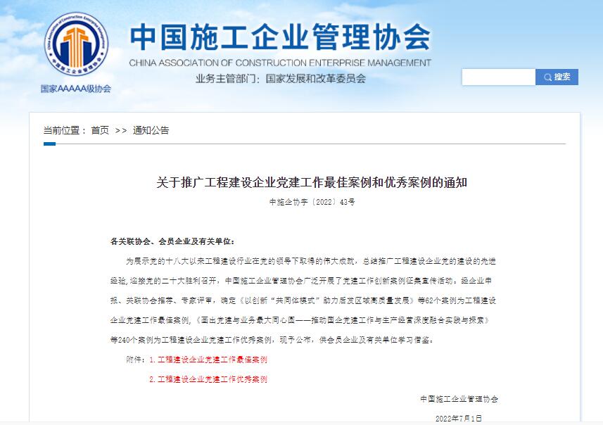 為展示黨的十八大以來(lái)工程建設(shè)行業(yè)在黨的領(lǐng)導(dǎo)下取得的偉大成就,總結(jié)推廣工程建設(shè)企業(yè)黨的建設(shè)的先進(jìn)經(jīng)驗(yàn),迎接黨的二十大勝利召開,近日,中國(guó)施工企業(yè)管理協(xié)會(huì)組織開展了工程建設(shè)企業(yè)黨建工作優(yōu)秀案例評(píng)審工作,山東水總有限公司第六分公司黨支部的《塑品牌抓活動(dòng)促活力 切實(shí)提升黨建工作水平》案例獲評(píng)“工程建設(shè)企業(yè)黨建工作優(yōu)秀案例”。