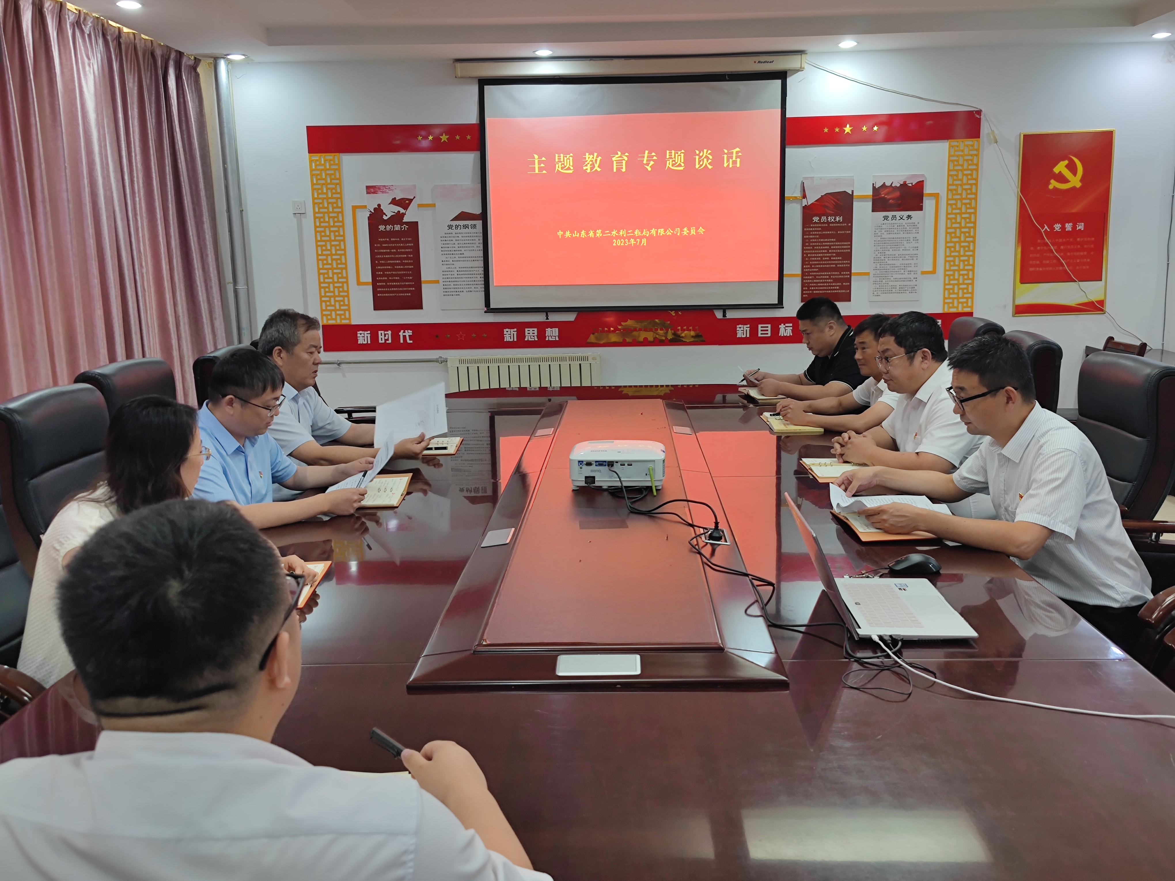 7月7日,二局有限公司黨委書記、總經理王傳波與領導班子成員、各黨支部書記開展主題教育專題談話。