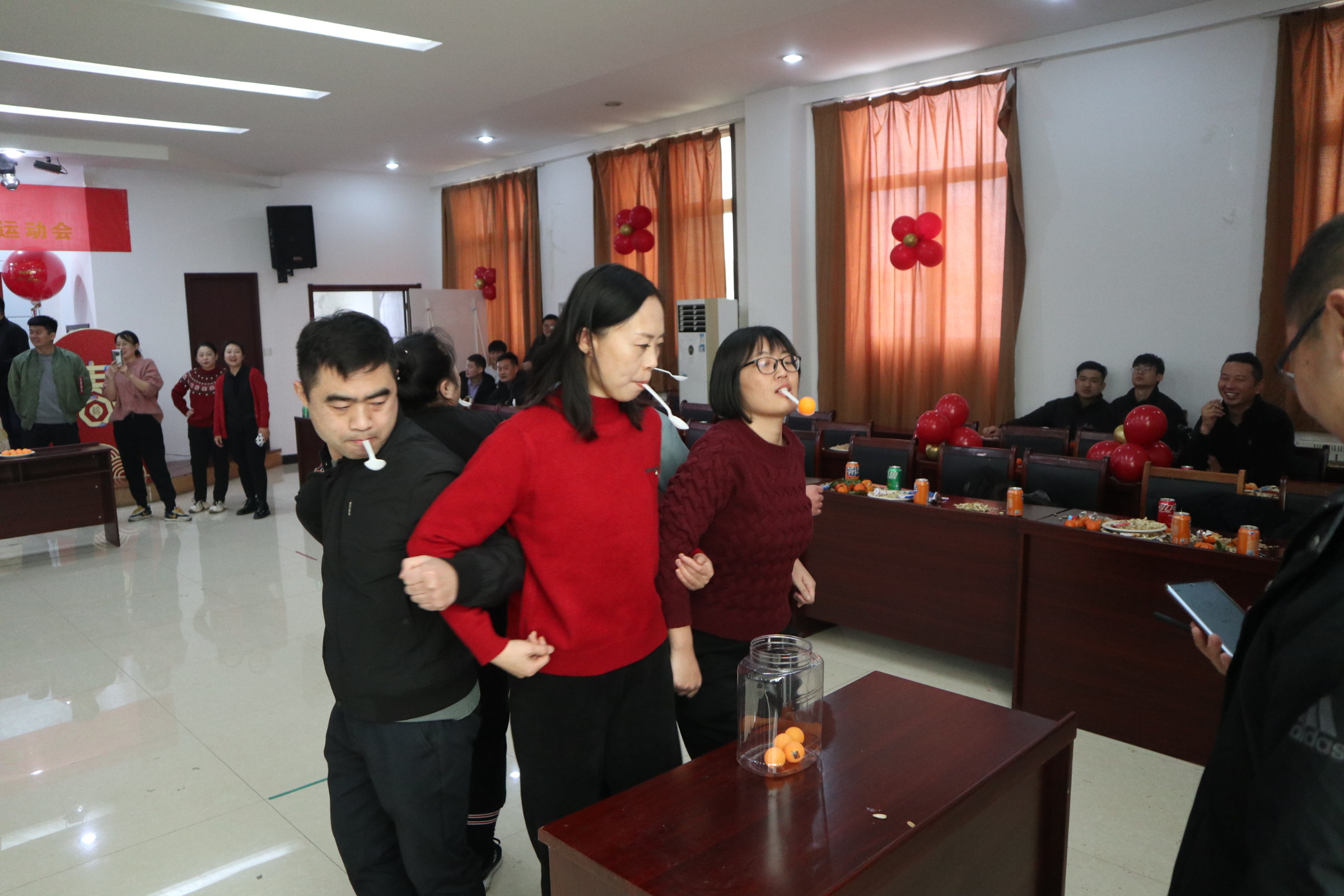 此次運動會集趣味性、協作性、競爭性于一體,包括同舟共濟、疊紙杯接力、勺子大作戰、雙龍戲珠、趣味保齡球、蒙眼擊鼓、袋鼠跳跳、夠級、摜蛋等多個項目。比賽現場既緊張激烈,又妙趣橫生,每項運動不僅考驗參賽選手的體力與動作協調性,更是參賽隊伍團結協作和智慧的完美比拼。賽場上,加油聲、吶喊聲此起彼伏,歡聲笑語不絕于耳。